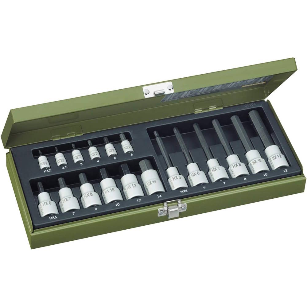 Trusă specială pentru şuruburile HEX. Cu pătrate de antrenare de 1/4" şi 1/2".