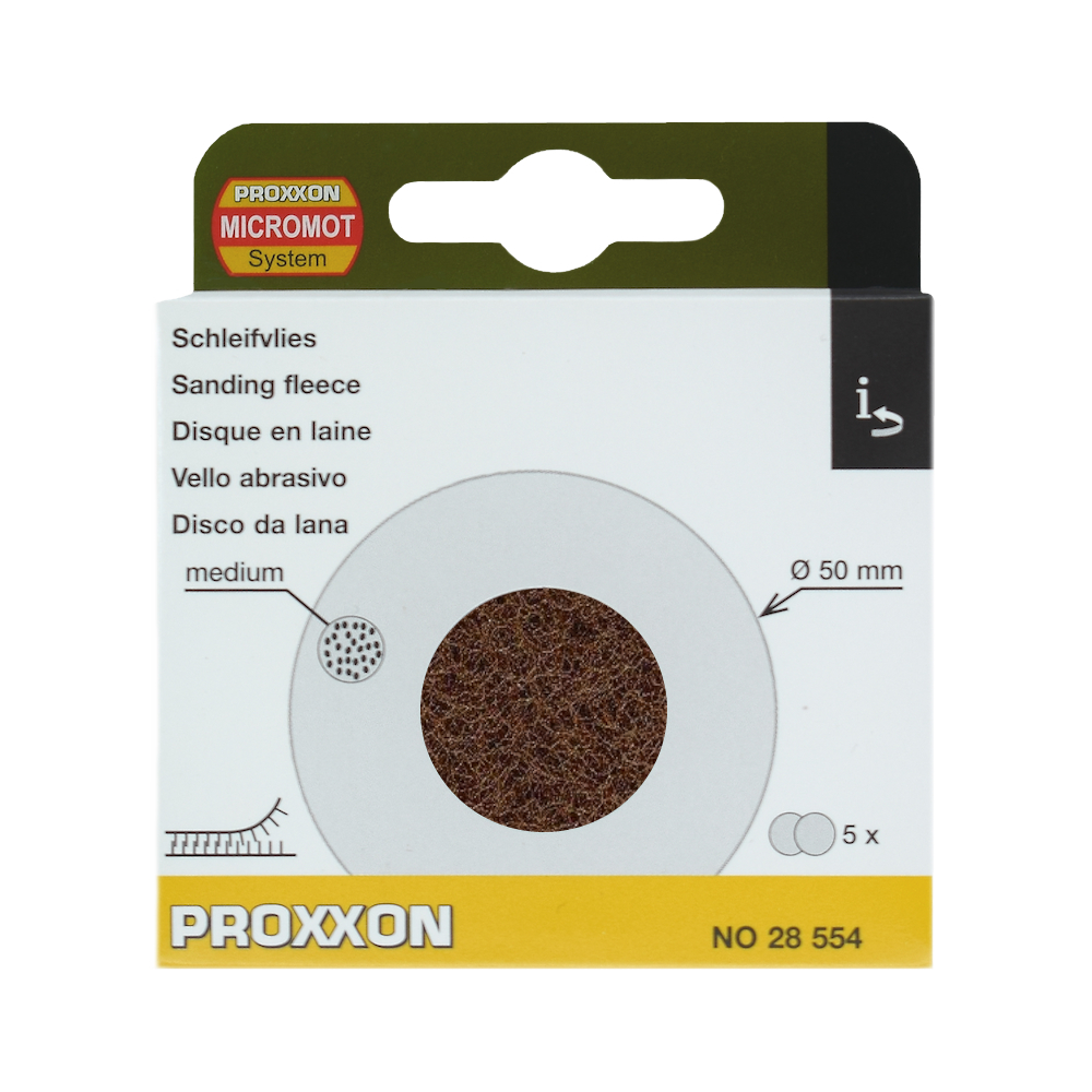 Aceste discuri sunt proiectate special pentru a fi utilizate împreună cu Polizorul unghiular cu gât lung Proxxon LHW (sau varianta cu acumulator LHW/A). Materialul utilizat la realizarea acestor discuri este ideal pentru prelucrarea suprafețelor unde abrazivii rigizi ar putea fi prea agresivi, oferind un control excelent asupra gradului de șlefuire.
