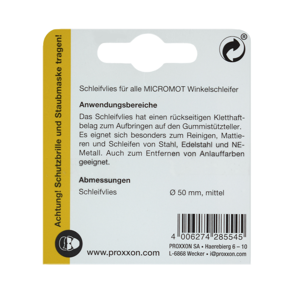 Utilizarea discurilor Proxxon 28554 garantează o durată de viață extinsă a mașinilor Proxxon și rezultate constante. Spre deosebire de alternativele generice, lâna din care sunt realizate aceste discuri își păstrează densitatea și puterea de tăiere chiar și în condiții de utilizare intensă, asigurând o descărcare eficientă a reziduurilor rezultate în timpul șlefuirii.